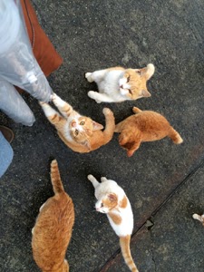 同乗していた釣り客のオジサンによると、気に入った猫がいると、連れて帰ってもいいんだって。